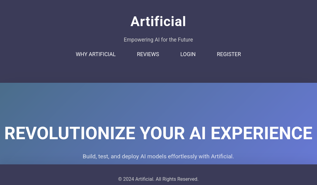 Service Info: OS: Linux; CPE: cpe:/o:linux:linux_kernelThe machine exposes only SSH and a HTTP web-server, that wants to redirect me to the artificial.htb domain. So I add the domain to my /etc/hosts file. The website itself looks custom made and revolves around “AI” models. As seen in the screenshot there is also a login and register option, through which I create my own account.