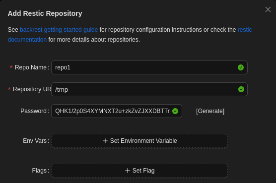 $2a$10$cVGIy9VMXQd0gM5ginCmjei2kZR/ACMMkSsspbRutYP58EBZz/0QO:!@#$%^As is somewhat common when having privileged access to a backup solution I want to use this access to read privileged files. This process usually starts by creating your own backup and then dumping file or configure the backup to execute commands. Here I create a new repository, the URI does not matter.
