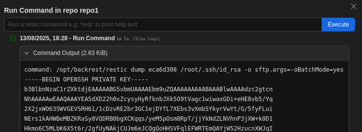 command: /opt/backrest/restic dump eca6d308 /root/.ssh/id_rsa -o sftp.args=-oBatchMode=yes